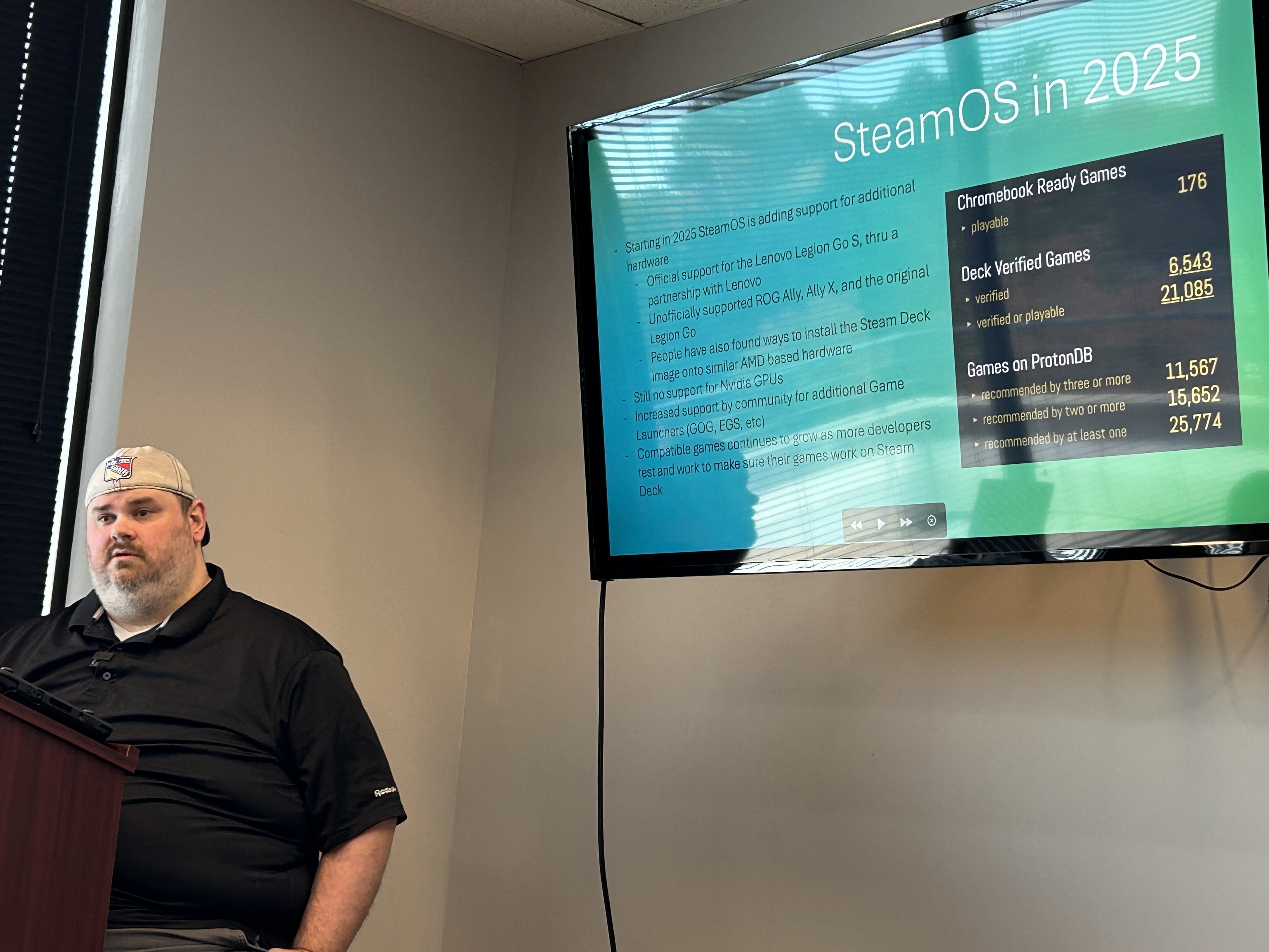 Tim Montgomery presenting on Linux Gaming.